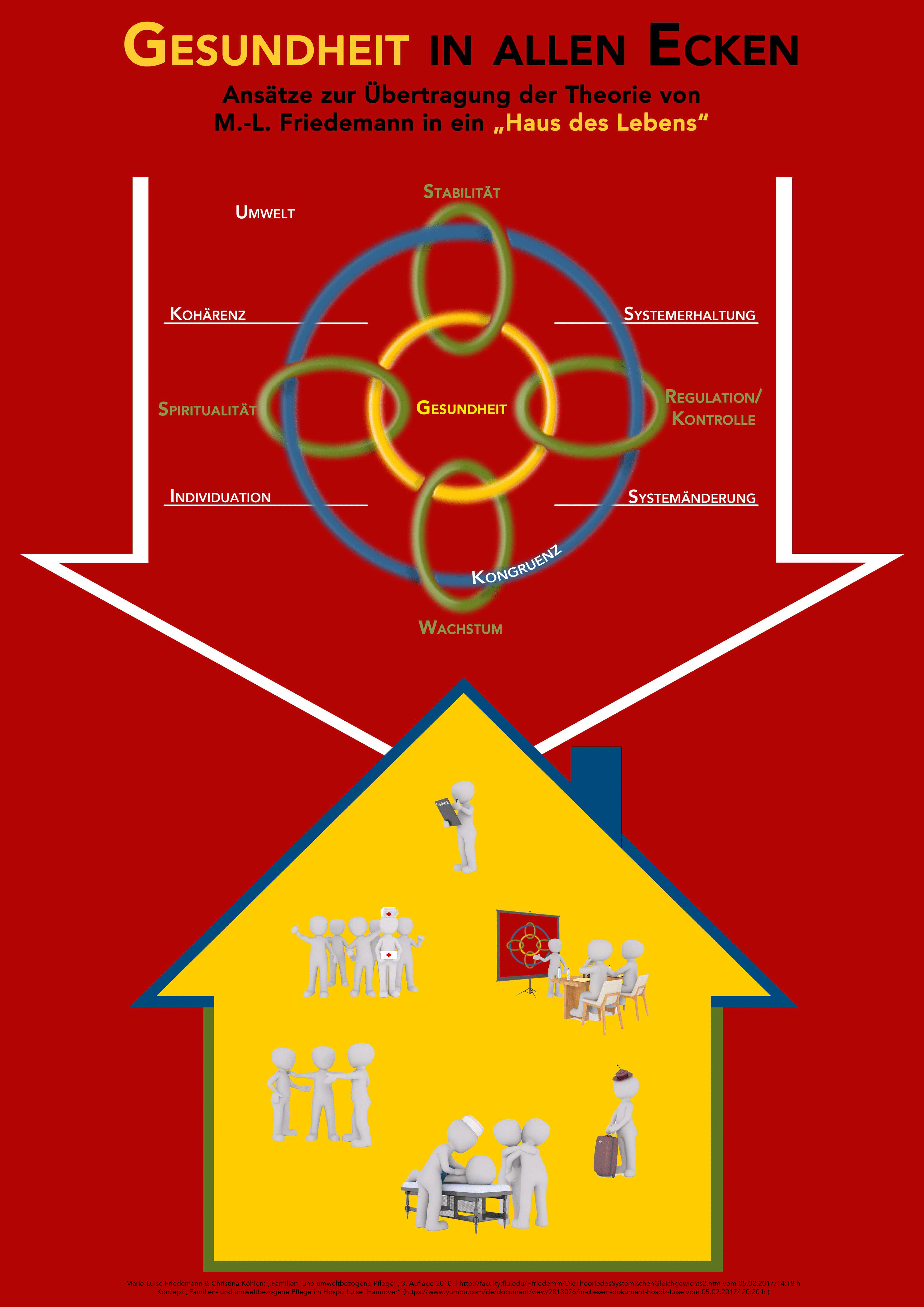 Der Hospizgast wird mitsamt seinen „Zugehörigen“ wahrgenommen und gepflegt. Im Mittelpunkt der Pflegetheorie Friedemanns, als Ziel des Individuums sowie seiner Familie und auch im Zentrum des Diagramms, steht die Gesundheit, die jeder Mensch als kraftspendende Energie empfindet.